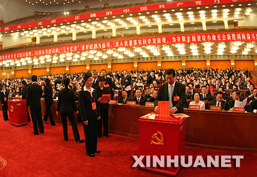 在閉幕會議上,與會的兩千兩百三十五名中共十七大代表和特邀代表以無記名投票方式,選出了新一屆中央委員會和中央紀律檢查委員會組成人員,其中中央委員二百0四人、候補中央委員一百六十七人,中央紀律檢查委員會委員會委員一百二十七人。