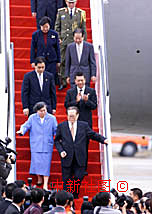 圖文:何厚鏵陪江澤民與王冶坪下機 2000年12月19日 19:30 ![]() 國家主席江澤民與夫人王冶坪在澳門特區(qū)行政長官何厚鏵的陪同下,于19日下午乘專機抵達澳門機場,出席澳門回歸祖國一周年慶典活動,江澤民主要陪同人員錢其琛等同機抵達。中新社傳真 滿會喬攝