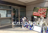圖:美國駐香港總領事館門前獻花人不斷 2001年09月17日 17:40 ![]() 美國紐約世貿(mào)中心受攻擊后,每天都有人到美國駐香港總領事館獻花悼念遇難者。9月17日美國駐香港總領事館再度關閉,但依然不時有人在緊閉的大門外獻上寄托哀思的鮮花。中新社傳真 任晨鳴 攝 |