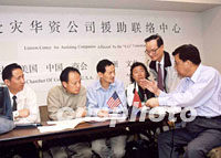 圖:"九一一受災(zāi)華資公司援助聯(lián)絡(luò)中心"投入工作 2001年09月22日 13:51 ![]() 為幫助“九一一”劫難中受災(zāi)的一百多家華資企業(yè)處理善后和重建業(yè)務(wù),美國中國商會和亞洲文化企業(yè)有限公司共同設(shè)立了“九一一受災(zāi)華資公司援助聯(lián)絡(luò)中心”。該中心投入服務(wù)的第二天(九月二十一日),中國駐紐約總領(lǐng)館的商務(wù)官員來到中心看望義務(wù)工作者。圖為本身也是受害者的姚定康(右一)向領(lǐng)館官員和媒體介紹聯(lián)絡(luò)受難者的情況。中新社圖 龔文謨 攝 |