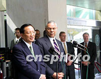 唐家璇外長與鮑威爾會(huì)談 雙方達(dá)成五方面共識(shí) 2001年09月22日 15:17 ![]() 9月21日中午,中國外長唐家璇在美國國務(wù)院與鮑威爾國務(wù)卿舉行會(huì)晤,就中美雙邊關(guān)系和反恐怖領(lǐng)域的合作等議題進(jìn)行廣泛的交流。唐家璇外長對(duì)媒體記者說,會(huì)晤是成功的、十分有益的、建設(shè)性的。中新社圖 徐德金 攝 ![]() 九月二十一日中午,中國外長唐家璇在美國國務(wù)院與鮑威爾國務(wù)卿舉行會(huì)晤,雙方表示將在反恐怖領(lǐng)域進(jìn)行更好的合作。中新社圖 徐德金 攝