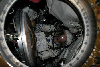走進北京航天指揮控制中心,寬敞、明亮的現(xiàn)代化指揮控制大廳里,大屏幕最左邊清晰地顯示著“神舟”四號飛船返回艙內的真實圖像:艙內懸掛的橫幅標語和飄動的五彩小氣球仿佛伸手可及。