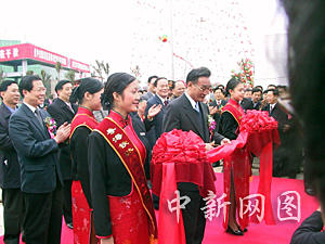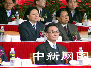 十點(diǎn)四十六分,中共中央政治局常委、國(guó)務(wù)院副總理吳邦國(guó)在棧橋火車(chē)前為粵海鐵開(kāi)通剪彩。