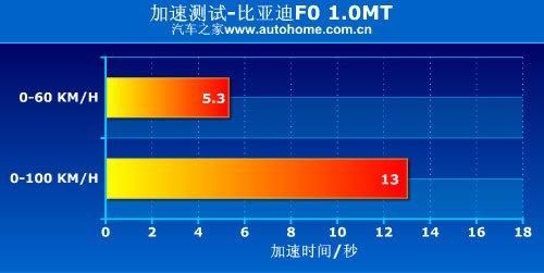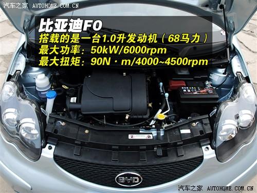 比亞迪F0搭載的是排量為1.0L的3缸全鋁發(fā)動機,最大功率為68馬力,最大扭矩90牛米,在國內(nèi)同級別的車型中,它的動力性是比較出色的,0-100Km/h加速只用了13秒,在微型車中算是比較不錯的成績了,但表現(xiàn)不佳的剎車成績讓人缺乏安全感。關(guān)于它詳細的測試,可以參考下面的文章: