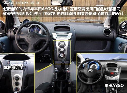 比亞迪F0是目前非常受歡迎的微型車之一,可愛靚麗的造型尤其吸引年輕人的目光,在整個微型車領(lǐng)域中的銷量也是名列前茅,當然這與它親民的售價也是分不開的,然而它俊俏的外表和可愛的內(nèi)飾卻與豐田旗下的兩款車有著極度的相似。