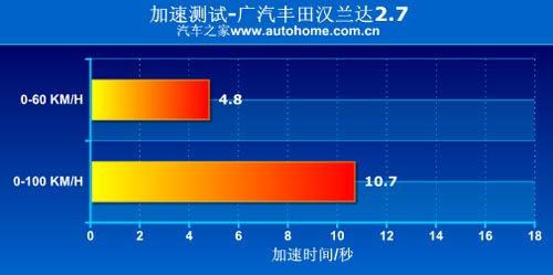 對于這款超過1.8噸的車輛來說,漢蘭達排量為2.7升的發(fā)動機表現(xiàn)基本滿足正常需要,只要舍得踩下油門,變可發(fā)揮出0-100Km/h的加速時間為10.7秒的成績,41.7米的剎車成績對于SUV車型來說還是不錯的。漢蘭達搭載的是一臺6速手自一體自動變速箱,日常駕駛中的換擋平順性也令人滿意。
