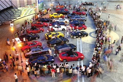 當(dāng)晚7時(shí)許,23臺(tái)法拉利、瑪莎拉蒂轎車停在廣場上,四周拉起警戒線,近10名保安值守,禁止圍觀市民靠近觸摸。記者發(fā)現(xiàn),共有5臺(tái)身價(jià)200萬元以上的瑪莎拉蒂,其余18輛法拉利跑車均價(jià)值300萬元以上,其中不乏號(hào)稱全球最快敞篷跑車的法拉利ScuderiaSpider16M,售價(jià)500余萬元。
