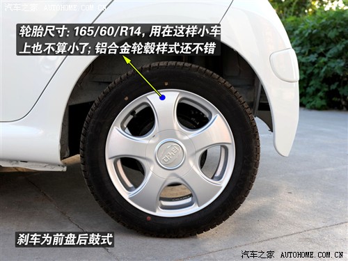 說(shuō)實(shí)話微型車輪轂好看的還真不是很多,畢竟尺寸在那兒擺著呢,能做出來(lái)的花樣有限,更何況還有成本這只利劍懸在頭上,所以小型車的輪轂基本上沒(méi)有太復(fù)雜了,首先要滿足實(shí)用性的需求,有的車型甚至只有鋼輪轂加裝飾蓋,有的鋁合金輪轂造型你可能都不愿再看第二眼,所以在微型車中找一款好看的輪轂相當(dāng)不容易,好在比亞迪F0的輪轂比較有特色。