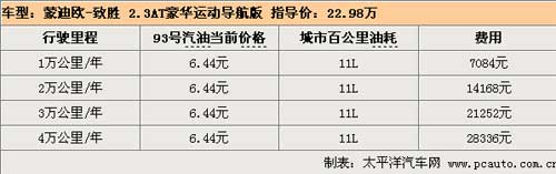 致勝的2.3L發(fā)動機的最大功率為118Kw/6500轉(zhuǎn),最大扭矩為205Nm/4000轉(zhuǎn)。這與馬自達6 2.3L的數(shù)據(jù)相差并不是太多,估計新蒙迪歐致勝的動力系統(tǒng)還是來自于馬自達6。 蒙迪歐致勝2.3自動版的百公里油耗成績?yōu)?1L,每行駛1萬公里需要費用為7084元。