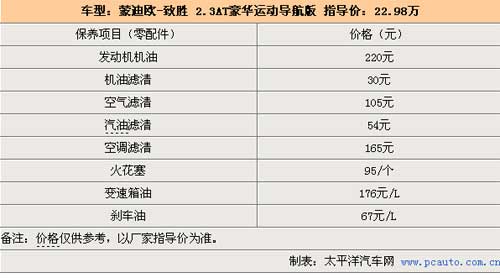 致勝首保為5000公里,之后每1萬公里保養(yǎng)一次。保修期限內(nèi),致勝車主可享受四次免費更換發(fā)動機機油和機油濾清器的服務(wù),因此保養(yǎng)花費會相對減少。致勝每次小保養(yǎng)費用為312元,空氣濾清器和汽油濾清器都是每10 000 km更換一次。由于致勝剛上市不久,所以并沒有更為詳盡的保養(yǎng)價格。在購買致勝的時候,長安福特有贈送4次免費更換機油機濾保養(yǎng)的政策,因此按這樣計算的話,2萬km之內(nèi)的保養(yǎng)花費會比較少。