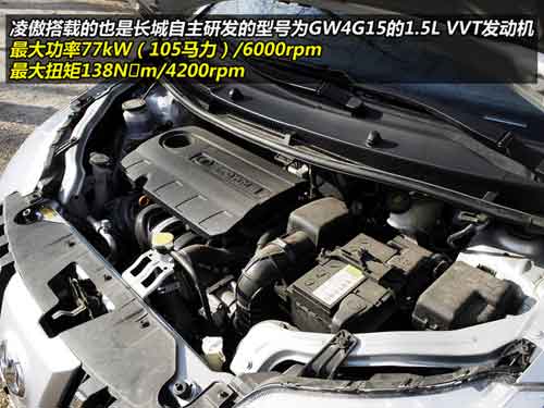 其實(shí),凌傲和酷熊、炫麗一樣,搭載的也是長城自主研發(fā)的型號為GW4G15的1.5L VVT發(fā)動機(jī),最大功率77kW(105馬力)/6000rpm,最大扭矩138N·m/4200rpm,這樣的數(shù)據(jù)在同級別發(fā)動機(jī)中屬中上等水平,推動凌傲1.1頓左右的車身完全沒有問題。