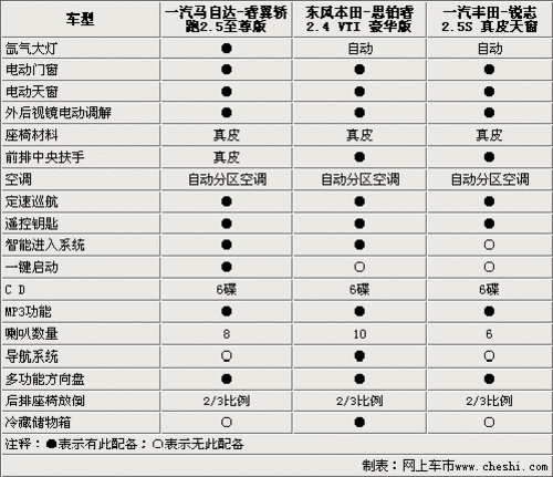 上述三款車型都屬于該車系中的主推車型,所以在舒適配置方面可謂是應(yīng)有盡有。真皮座椅、座椅電動(dòng)調(diào)節(jié)、自動(dòng)空調(diào)、定速續(xù)航、多功能方向盤等設(shè)備都成為了標(biāo)準(zhǔn)配置。但比較遺憾的是思鉑睿沒(méi)有配備當(dāng)下比較流行的一鍵啟動(dòng)按鍵,只是配備了無(wú)鑰匙啟動(dòng)系統(tǒng)。三款車型都是無(wú)鑰匙進(jìn)入系統(tǒng),大大方便了車主及乘客。思鉑睿具有冷藏功能的儲(chǔ)物箱,可以讓乘客以及駕駛員在炎炎夏日喝到?jīng)鏊娘嬃。睿翼轎跑的音響系統(tǒng)是由世界頂級(jí)BOES影響量身定做的,可以讓乘客充分享受到音樂(lè)給予帶來(lái)的快樂(lè)。