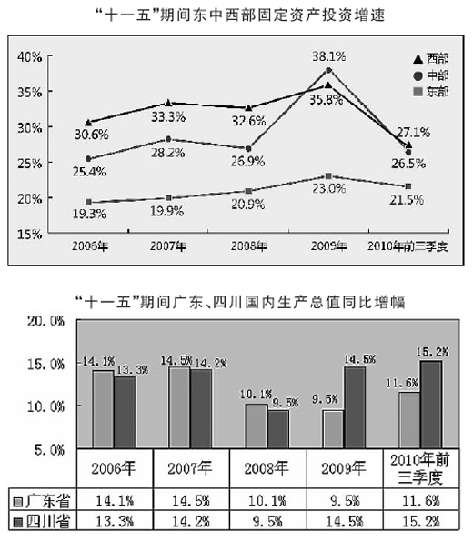 “十一五”期間,國家促進區(qū)域協(xié)調(diào)發(fā)展的政策力度前所未有,各地對地區(qū)發(fā)展戰(zhàn)略研究與實施的重視程度前所未有,區(qū)域經(jīng)濟發(fā)展取得的成績也前所未有。特別是隨著一系列區(qū)域規(guī)劃和政策文件的密集出臺,東部地區(qū)的發(fā)展支撐帶布局進一步完善,中西部地區(qū)新的增長極不斷涌現(xiàn),中國區(qū)域經(jīng)濟版圖日趨清晰,沿海與內(nèi)地競相奮進、良性互動的發(fā)展格局基本形成。