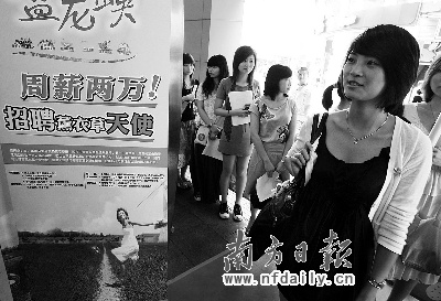 德慶盤龍峽2萬元周薪招聘“薰衣草天使”活動進入了現(xiàn)場招聘環(huán)節(jié)。記者昨日在招聘現(xiàn)場看到,應(yīng)聘人需先填寫報名表格經(jīng)過第一關(guān)面試,過關(guān)后進入第二關(guān)———拍照,而第二關(guān)讓不少人笑稱為“選美比賽”。