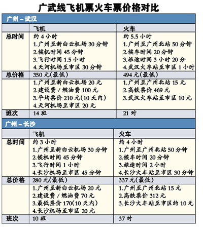從此可以看出,武廣沿線,飛機(jī)票便宜過火車票已經(jīng)成為常態(tài)。