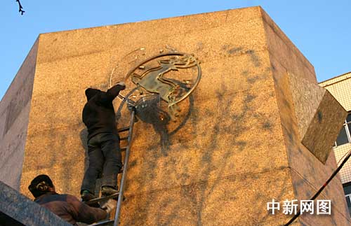下午四時(shí)三十分許,記者在石家莊市和平西路三鹿集團(tuán)總部看到,兩名工人開始拆除門口警衛(wèi)室旁東西方兩側(cè)的“三鹿”標(biāo)志?偛块T口“石家莊三鹿集團(tuán)股份有限公司”的字樣已經(jīng)被拆除,只留下模糊的痕跡依稀可辨。