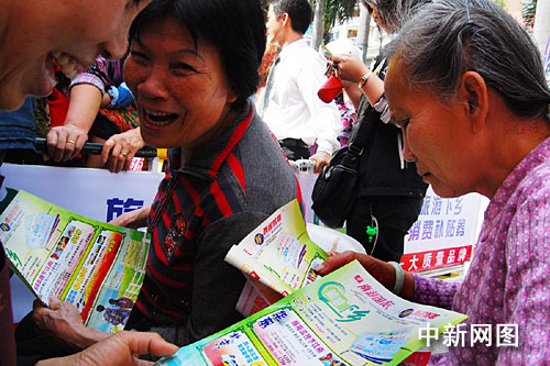 而肇慶市七星巖牌坊廣場也好不熱鬧,擠滿了特意前來選購“旅游下鄉(xiāng)”線路的肇慶各鄉(xiāng)鎮(zhèn)農(nóng)民,看到那么多質(zhì)優(yōu)價廉的旅游線路,他們臉上都綻放出燦爛的笑容。