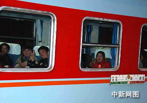 據(jù)杭州鐵路公安局馬警官介紹,這春運第一車是由杭州開往阜陽的,但由于是一趟臨時加班車,所以車身上依然掛的是上海到淮北的牌子。同時該車乘務員告訴記者,該車在加了車廂后,現(xiàn)在共有17節(jié)車廂,而從杭州站上車的旅客就有1800多人,超員已在百人以上了。“17節(jié)肯定是不夠的,路上過站還得有人要上,可現(xiàn)在光杭州首發(fā)站,就連餐車里都坐滿了人,前面還有幾節(jié)車廂還有好多沒座票的人站著呢!瘪R警官指著餐車車廂說道。(完)