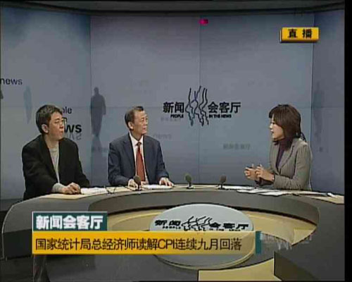 李小萌:你好觀眾朋友,歡迎來(lái)到正在直播的《新聞會(huì)客廳》。今天上午十點(diǎn),國(guó)家統(tǒng)計(jì)局公布了2009年1月居民消費(fèi)價(jià)格指數(shù),也就是CPI指數(shù)是1.0%,這也創(chuàng)下了2006年8月至今最新的一個(gè)低點(diǎn)。今天我們就請(qǐng)到國(guó)家統(tǒng)計(jì)局總經(jīng)濟(jì)師姚景源先生來(lái)和我們共同通過(guò)理解CPI,來(lái)理解我們當(dāng)下的生活,以及未來(lái)的生活會(huì)發(fā)生什么樣的變化,歡迎您姚總,同時(shí)在場(chǎng)外我們也請(qǐng)到兩位經(jīng)濟(jì)領(lǐng)域的專業(yè)人士會(huì)提出他們的觀點(diǎn),帶出他們的聲音。 而坐在姚總旁邊的是三聯(lián)生活周刊的副總編輯李鴻谷先生,今天請(qǐng)您來(lái),我知道您對(duì)經(jīng)濟(jì)其實(shí)涉獵也很多,但是你今天的任務(wù)是最普通人的角度,最普通人的觀點(diǎn)來(lái)觀察和提問(wèn)好嗎?