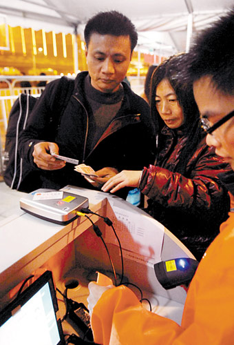 今天零時8分,廣州春運首趟實名制火車票列車———廣州至邵陽L7688次列車開出。昨日下午2時,春運異地候乘點琶洲展館迎來搭乘這趟列車的旅客。記者在現(xiàn)場看到,寬敞的展館里,實名制檢票窗口一字排開,乘客自覺準備好身份證和火車票等待檢票。檢票人員用電子儀器掃過車票和身份證,信息一左一右顯示在電腦屏幕上,核對完畢需時僅10秒左右。實名制下首位順利通過檢票口的乘客是來自湖南邵陽的蔣先生!百I票時,我在售票窗口排了10分鐘左右,不是很麻煩,沒想到檢票更方便。”蔣先生面帶喜色地說。在檢票現(xiàn)場,公安部門還設(shè)置專窗,為沒帶或丟失身份證的旅客辦理臨時證明。
