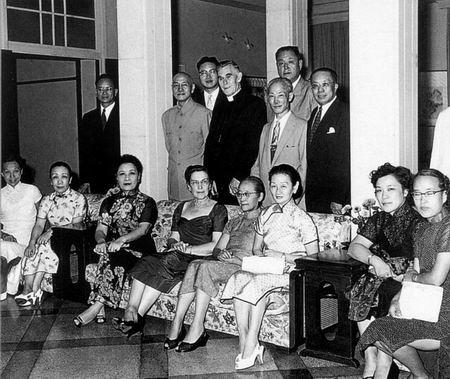 1956年,蔣介石、陳誠面見美國參議員哈瑞斯等人。50年代,受到國際冷戰(zhàn)格局的影響,美國與臺灣的關(guān)系親密異常,美國不僅在臺灣有大批駐軍,許多國會議員、軍事將領(lǐng)、教育、文化、體育乃至娛樂團(tuán)體等等亦絡(luò)繹不絕地來臺,對臺灣的社會文化影響至鉅。
