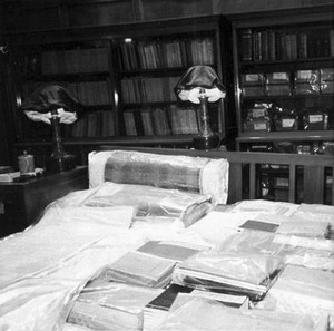 在東廂房的五間中,中間的一間是過(guò)廳,靠北側(cè)的兩間是通著的,這就是毛澤東的辦公室,與過(guò)廳相通?磕蟼(cè)的兩間不與過(guò)廳相通,也不在菊香書(shū)屋院內(nèi)開(kāi)門(mén),而是開(kāi)在東廂房東面的夾道內(nèi)。這里是貯藏室,若去這貯藏室,需要走出菊香書(shū)屋這所院子。