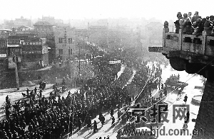 入城式領(lǐng)導(dǎo)為什么先到前門箭樓東邊空地上,是為了勘察受閱部隊(duì)的行進(jìn)路線,因?yàn)檫@支主要由繳獲美式裝甲車、大炮、坦克等裝備組成的威武之師,要從箭樓東側(cè)前行至東交民巷,向帝國主義者示威。人民群眾拍手稱快,受閱部隊(duì)與市民水乳交融,口號聲、歌聲震天,直至下午5點(diǎn),才由廣安門出城。稍事休整,又踏上了南下解放全中國的征程。
