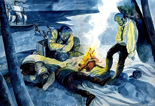 在大海盜愛德華 洛威爾的海盜旗上,鮮紅的人體骨架代替了白色的骷髏,似乎在昭示著,這位海盜的殘忍是罕有匹敵的。洛威爾曾截獲了一條從巴西返航的葡萄牙商船,葡萄牙船長(zhǎng)將一萬多枚金幣裝在麻袋里,用繩索扎緊掛在舷窗外,期望能躲過這一劫。但這點(diǎn)小小的詭計(jì)沒能逃過海盜們銳利的眼睛,就在欣喜的海盜們將手伸向繩索的那一瞬,船長(zhǎng)突然從腰間拔出匕首割斷了繩子,金幣落入了大海。氣急敗壞的洛威爾將這位船長(zhǎng)的嘴唇割了下來,當(dāng)著所有俘虜?shù)拿嬖谟蜔羯峡窘沽耍缓蠛啡幻钍窒聦?2名葡萄牙船員全部殺死。1724年,洛威爾的海盜船被英國(guó)海軍捕獲,惡貫滿盈的洛威爾在海戰(zhàn)中被打死,在審訊被俘的海盜時(shí),人們獲知了這段聳人聽聞的慘劇,于是,英國(guó)海軍法庭對(duì)洛威爾手下的十四名骨干處以絞刑。