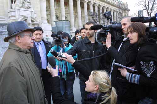 據(jù)法國(guó)《歐洲時(shí)報(bào)》報(bào)道,2月25日下午,在圓明園獸首拍賣前夕,部分旅法華僑華人與留學(xué)生自發(fā)到巴黎大皇宮前拍賣現(xiàn)場(chǎng)外,散發(fā)說明圓明園劫難及獸首來歷的小冊(cè)子,告訴法國(guó)人圓明園歷史的真相,表明旅法華僑華人及留學(xué)生的立場(chǎng),督促有良知的法國(guó)人盡快通過一定渠道歸還被劫的歷史文物!秷A明園大劫難》作者、法國(guó)歷史學(xué)家布里賽等法國(guó)友人也到現(xiàn)場(chǎng)宣講真相。這次活動(dòng)受到法國(guó)主流媒體的廣泛關(guān)注。