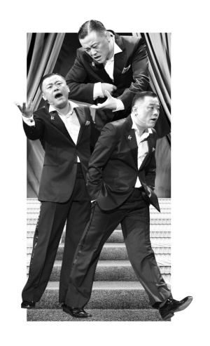 在周立波的《笑侃大上!分,最能引起臺下中年觀眾共鳴的就屬“文革”片段,錢文忠分析它之所以能產(chǎn)生如此強烈的“笑果”,除了勾起這一輩人的獨特記憶外,“他將‘文化大革命’說成‘文化革大命’,其實是很睿智地指出了文革中種種荒唐可笑的現(xiàn)象!倍芰⒉ㄒ愿阈ι踔磷猿暗姆绞綘砍隽宋母锏倪@段記憶,也在無形中解開了一個民族的心結。