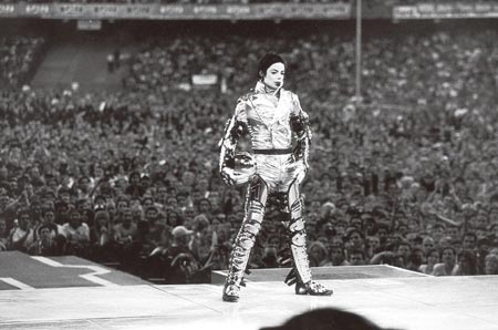 可惜的是,邁克爾從來(lái)沒(méi)有來(lái)到中國(guó)內(nèi)地,他去過(guò)香港,分別在1993 年和1997 年在臺(tái)灣舉辦過(guò)兩場(chǎng)演唱會(huì)。臺(tái)灣歌手吳克群很幸運(yùn),他看的第一場(chǎng)演唱會(huì)便是邁克爾的。那是1993年,邁克爾的“DANGEROUS”(危險(xiǎn))巡回演唱會(huì)。當(dāng)時(shí)的吳克群還在上中學(xué),“門(mén)票賣(mài)2000 多塊臺(tái)幣一張,我買(mǎi)不起,只好在場(chǎng)外一直等!钡阶詈螅瑓强巳号郎象w育場(chǎng)的墻,他看到那個(gè)在舞臺(tái)上閃閃發(fā)光的男人,臺(tái)下的人群為他瘋狂,全場(chǎng)沒(méi)有一個(gè)空位。