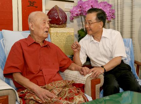 季羨林生前,中共中央政治局常委、國務(wù)院總理溫家寶曾5次前往北京301醫(yī)院看望他。這五次探望的時間分別是2008年8月2日、2007年8月3日、2006年8月6日、2005年7月29日、2003年9月9日。(綜合人民網(wǎng)消息)