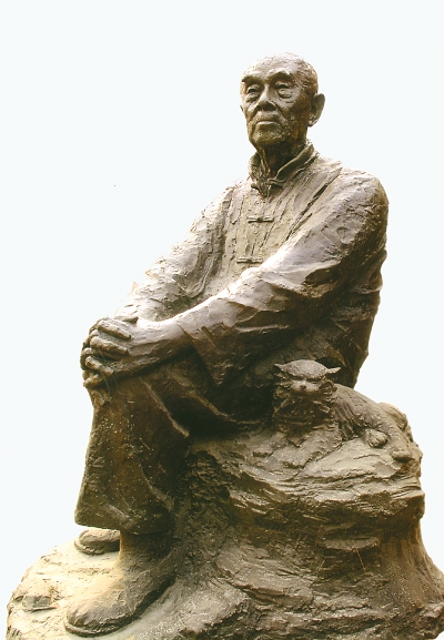 我已經(jīng)記不清是哪一年與季老有交往的了,反正幾十年了,在我的腦子里都是一連串的往事:有一年我?guī)е袼芗壹o(jì)峰到未名湖畔季老家里,告訴他這是青年雕塑家紀(jì)峰,來給你做一個(gè)像。季老只是微微點(diǎn)頭,仍舊與我說話。在旁邊的李玉潔老師卻心里犯嘀咕,這么年輕的人,能行嗎?這是她的心里話,沒有說出來。我與季老隨便說著,大約有半小時(shí)過去了,卻見到紀(jì)峰手里一個(gè)活生生的季老的頭像,季老說還沒有看到他塑呢,怎么就出來了,真像啊!這時(shí)李老師就說出了上面這段心里話。然后說想不到真能,像極了,比以前別人塑的都好。之后,季老一連要紀(jì)峰為他做了三個(gè)像,一個(gè)是與真人一樣大的坐在門外未名湖邊的像,一個(gè)是比真人還要大一點(diǎn)的站像,我為這個(gè)站像題了一首詩,刻在像后,詩云: