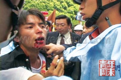 靖國(guó)神社內(nèi),眾人向神社行禮參拜,突然,一個(gè)學(xué)生模樣的年輕人沖到前面高呼“反對(duì)參拜靖國(guó)神社!”他很快被撲倒在地,雙方扭打在一起。終于有人竭力拉開(kāi)了他們,又有一位老者上前,緊逼著他走了很遠(yuǎn),并不住呵斥:“滾回中國(guó)去!滾回中國(guó)去!”年輕人一言不發(fā),但這長(zhǎng)達(dá)幾分鐘的反復(fù)呵斥令這些中國(guó)觀眾有些難以忍受。一直用攝像機(jī)記錄這一過(guò)程的李纓當(dāng)時(shí)也急切地想驗(yàn)明這個(gè)年輕人的身份,于是,在旁邊所有人都把這個(gè)反對(duì)參拜靖國(guó)神社的年輕人當(dāng)作中國(guó)人的時(shí)候,李纓小心翼翼地問(wèn)了一句:“是中國(guó)人嗎?”“不,我是日本人!