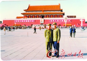 “我們哥倆兒幾乎是同步通過了天安門,這在全國參加國慶閱兵的官兵中都是罕見的!52歲的李鳴捷如今是中國銀行成都高新技術(shù)產(chǎn)業(yè)開發(fā)區(qū)支行行長。1984年10月1日上午10時許,展示中國改革開放和現(xiàn)代化建設(shè)巨大成就的國慶35周年大閱兵盛典上,李鳴捷在排序第一的軍事學(xué)院方隊,鏗鏘正步走過金水橋旁。此時,弟弟李明偉和戰(zhàn)友駕駛的機(jī)群,也呼嘯長空,在天安門上空中舞出四色彩煙,共慶盛典。退伍多年,兩兄弟很少主動提及這段經(jīng)歷,但當(dāng)年受閱的那身軍裝卻一直珍藏。