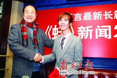 莫言:不是所有作家都得去寫農(nóng)民工,去寫底層生活這些現(xiàn)實題材,這樣文學不是太單調(diào)了嗎?你不能說這些網(wǎng)絡文學不是文學,我們常說文學要百花齊放,不是每個作家都需要有那么深的底蘊,這些網(wǎng)絡寫手寫出來的文學可能不符合嚴肅文學的定義,你可以不喜歡它,但是不能干預它,當然,現(xiàn)在也沒有人能干預得了網(wǎng)絡文學的發(fā)展。