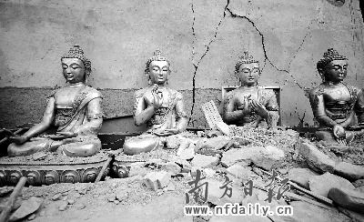 郭紅:目前我們只能從表面現(xiàn)象看這些文物的受損程度,還在做初步的鑒定。另外,這些受損的文物,像一些塔,都是受《文物法》保護(hù)的,我們不能隨意改動(dòng)。而且一個(gè)寺院有很多建筑,有可能主經(jīng)堂受到損壞,其他地方?jīng)]有損毀,這些都要具體問題具體分析。因此這些文物今后是要重建、移址重建或者修復(fù),我們要等國家的鑒定組過來,作出詳細(xì)判斷之后才能決定。