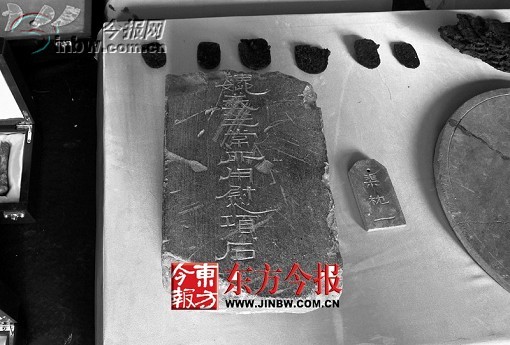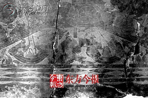 在已發(fā)現(xiàn)的曹操墓畫像石中,比較完整的都是從盜墓賊手中繳獲的。這些畫像石畫工精細(xì)嫻熟,有“神獸”、“七女復(fù)仇”等圖案,并刻有“主簿車”、“咸陽(yáng)令”、“紀(jì)梁”、“侍郎”、“宋王車”、“文王十子”、“咬人”、“飲酒人”,等等,另外還有門簪、雕龍等殘塊。