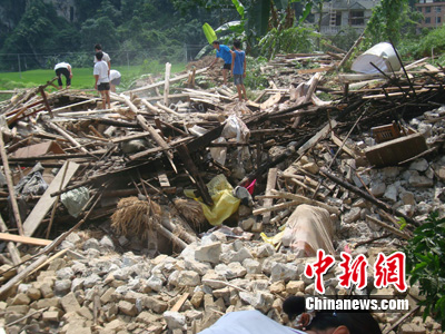 中新網(wǎng)河池8月4日電 (羅開革 王剛)廣西河池市鳳山縣公安局4日上午透露,該縣3日發(fā)生大面積山體滑坡事故,上萬立方的泥土和石頭摧毀了5間民房。所幸房內(nèi)人員及時逃生,沒有造成人員傷亡。