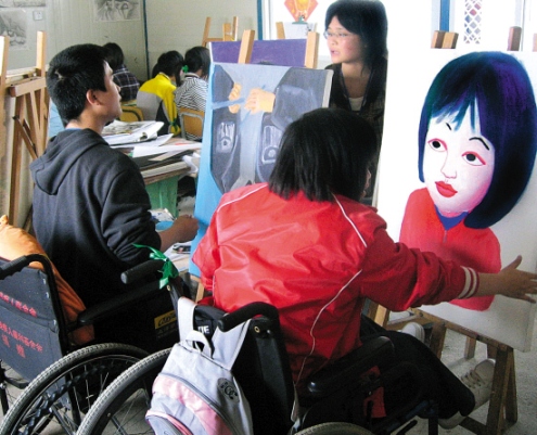 現(xiàn)在靠文化課上本科,對(duì)這屆畢業(yè)生來看,我覺得很難。不過,從去年開始,我們有意識(shí)地動(dòng)員高三學(xué)生突擊學(xué)畫畫,畢竟藝術(shù)考生文化成績(jī)不高,而且對(duì)殘疾人來講,學(xué)畫畫也是一個(gè)不錯(cuò)的出路。著名畫家周春芽還專門輔導(dǎo)了我們這些學(xué)生。這次有30多名畢業(yè)生參加了藝術(shù)類統(tǒng)考,成績(jī)不錯(cuò),估計(jì)有10多人可以上本科院校。