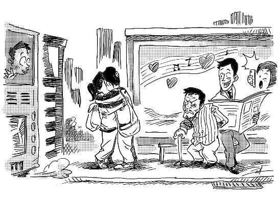 經(jīng)常在這里等車的人都見過這對(duì)學(xué)生戀人。初三女學(xué)生小張有點(diǎn)害羞地說:“愛情很美好,戀愛也正常,我們隔壁班有七八對(duì)這樣的戀人,老師也都知道。其中一對(duì)學(xué)習(xí)都很好,成績(jī)?cè)诎嗌隙寄芘胚M(jìn)前十名!