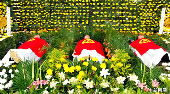 中新網(wǎng)武漢10月28日電 (記者 艾啟平)10月24日下午,湖北荊州10多位大學(xué)生手拉手結(jié)成人梯營救落水的兩名少年,其中有三名大學(xué)生獻(xiàn)出了年輕寶貴的生命。28日上午,湖北荊州市新北門外的殯儀館內(nèi)舉行了三位舍己救人大學(xué)生的追悼會。湖北省、荊州市、長江大學(xué)有關(guān)負(fù)責(zé)人以及社會各界群眾到現(xiàn)場參加了追悼會。