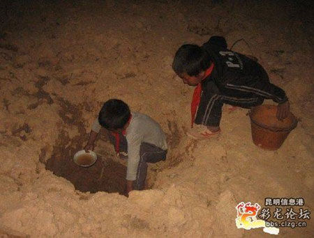 “不忍心拍這些照片,因?yàn)槲覜](méi)幫到孩子們什么!”日前,網(wǎng)友“haotian”在彩龍論壇上發(fā)了篇題為《旱情加重,學(xué)生喝水告急》的圖片帖,稱(chēng)是在云南南華縣灑披武村拍攝的,因?yàn)槿彼畬W(xué)生們很久不洗手了,吃飯后只能到河里或幾近干枯的井里打些渾濁歲來(lái)解渴,照片被各大網(wǎng)站轉(zhuǎn)載后,不少網(wǎng)友稱(chēng)看著讓人想哭。文/滾動(dòng)新聞?dòng)浾?耿紅仁 圖/“haotian”提供