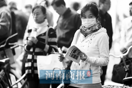 當天,鄭州下著小雨,不少考生擠在閱報欄下,翻看著手中的參考資料。