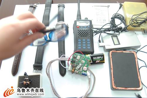 1月14日,在自治區(qū)無線電管理辦公室里,記者見到了收繳的各種無線電作弊工具,有手表、眼鏡、項(xiàng)圈,也有比指甲蓋還小的接收裝置。據(jù)介紹,在1月10日-11日的考試中,烏市共監(jiān)測到可疑信號12個(gè),查處5個(gè)發(fā)射作弊信號源,對其余信號運(yùn)用相關(guān)技術(shù)手段進(jìn)行壓制阻斷。查處涉案筆記本電腦2個(gè),5個(gè)無線電發(fā)射設(shè)備,4套無線電接收設(shè)備,涉案人員共11人。