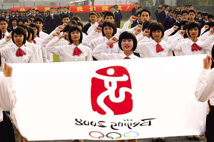 10日下午,海口奧運班的同學宣誓為北京奧運努力學習,做出自己的貢獻。 本報記者 黃一冰 攝