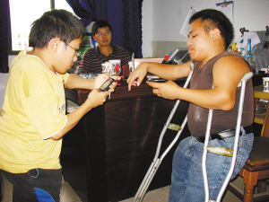謝江海(學(xué)長):我和李浩都是殘疾大學(xué)生,我們在外面可能會遭到路人一些異樣的目光,但是我們應(yīng)該報以平和心態(tài)。雖然身體有缺陷,但是我們要做到思想健康,心理健康。如果要在身體缺陷和心理缺陷中讓我選其一,我寧肯選擇身體缺陷,不希望自己做個心理有缺陷的人。本報記者 常宇