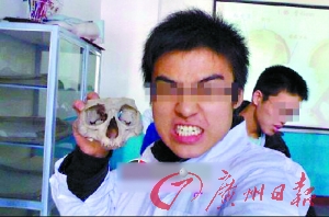 近日,某著名網(wǎng)站上有網(wǎng)友發(fā)圖片帖,展示了“重慶醫(yī)科大學(xué)”學(xué)生上實驗課時的留影,引起眾多網(wǎng)友關(guān)注。樓主和不少網(wǎng)友均認(rèn)為這些學(xué)生此舉是“不尊重生命”的行為,令人對當(dāng)今醫(yī)學(xué)院學(xué)生素質(zhì)深感憂慮。