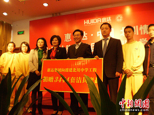 中新網(wǎng)綿陽(yáng)4月19日電 (徐楊祎)“從唐山到北川,盡管路途遙遠(yuǎn),但我們的心是貼在一起的!19日下午,唐山惠達(dá)集團(tuán)執(zhí)行董事總經(jīng)理王彥慶在北川中學(xué)捐贈(zèng)儀式上說到。本次捐贈(zèng)是由唐山惠達(dá)集團(tuán)向即將落成的新北川中學(xué)捐贈(zèng)百萬的節(jié)水潔具。