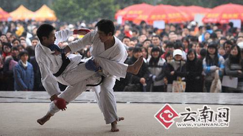 手握一根1.5米的木棍,身著藍色訓(xùn)練服的李萍表演起了“棍術(shù)”。這不是普通的武術(shù)表演,而是在云南省師范類畢業(yè)生專場招聘會上,大學生推銷自己的別樣方式。